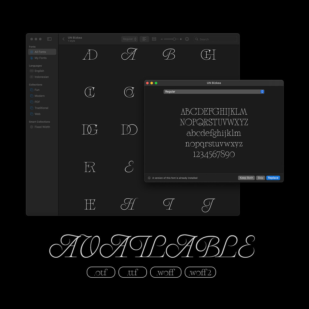 Bizkea is a unique display font that seamlessly blends the classic elegance of Garalde fonts. By reinterpreting the artistic and visual richness of these styles towards a more modern and contemporary approach, the result is a timeless font with character and versatility.