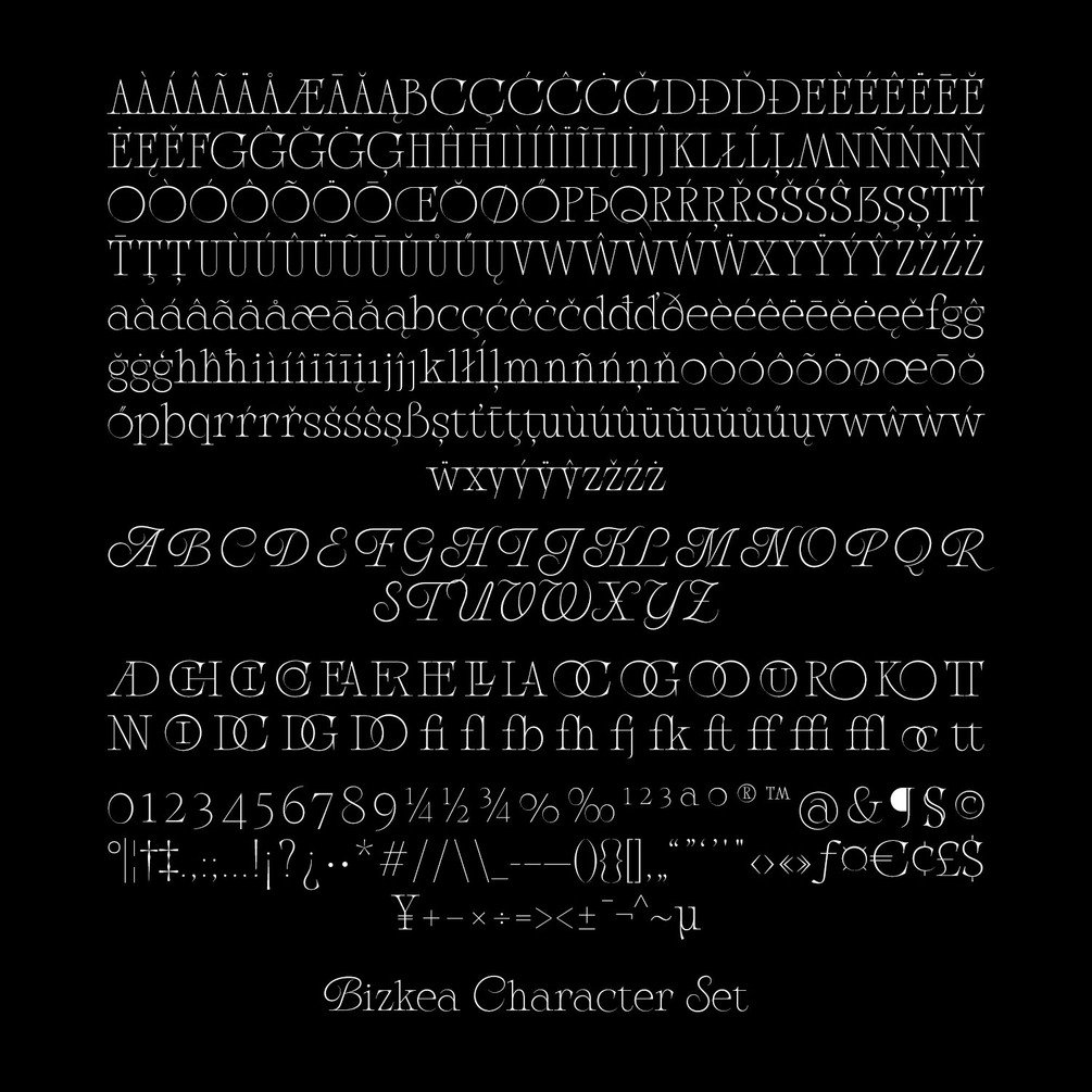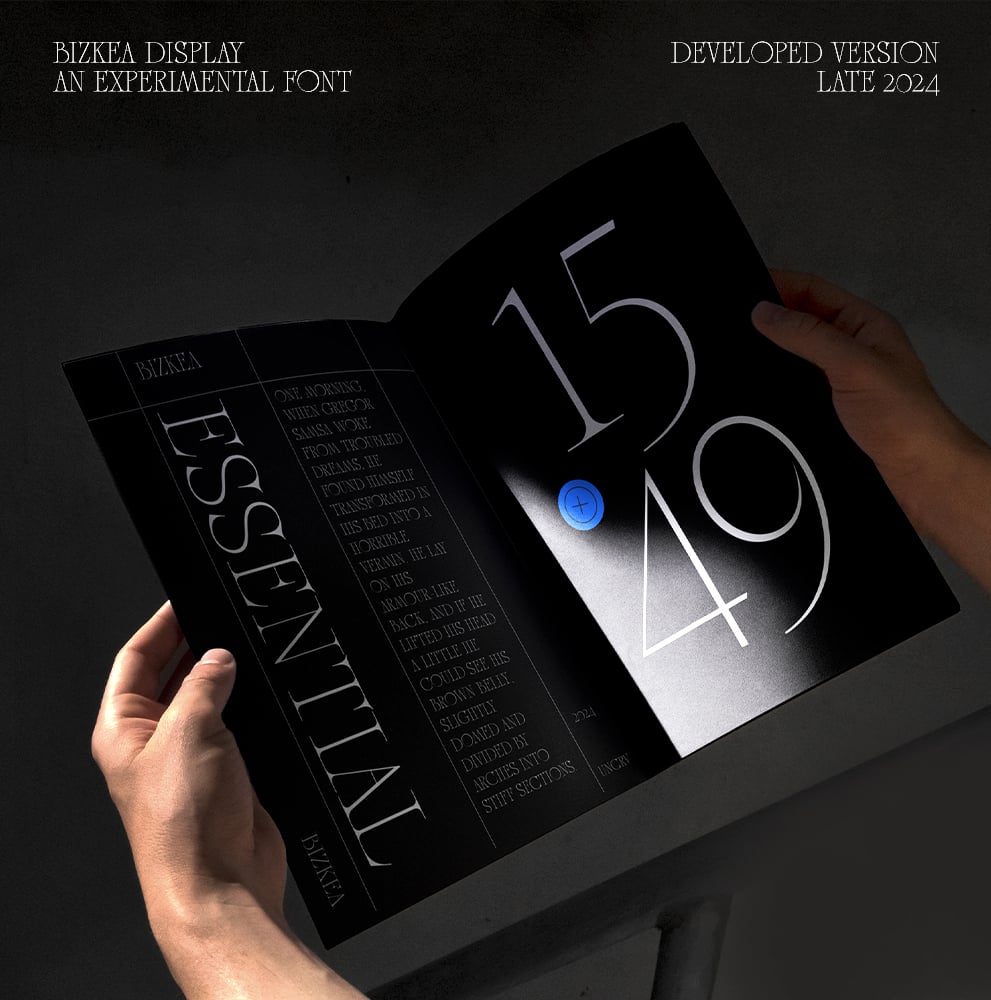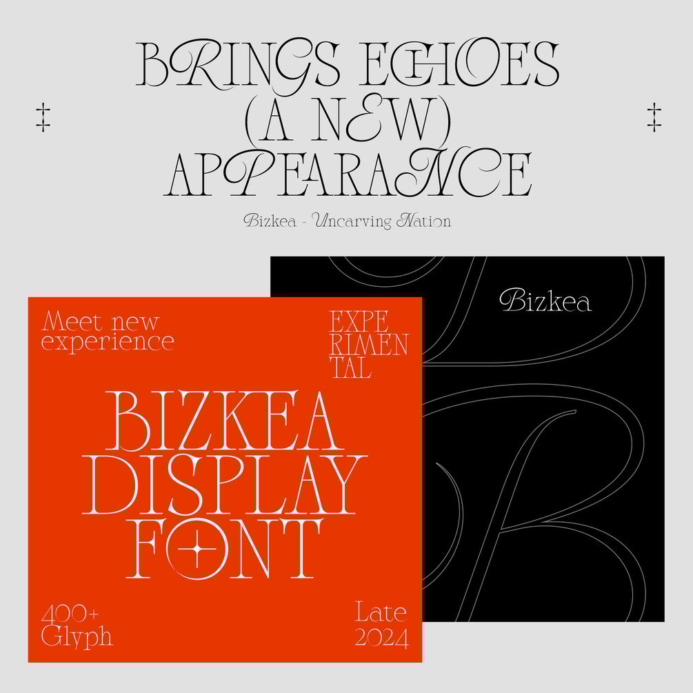 Bizkea stands out best in larger sizes, making a bold impact in headings and titles, yet remains versatile enough for various design contexts.