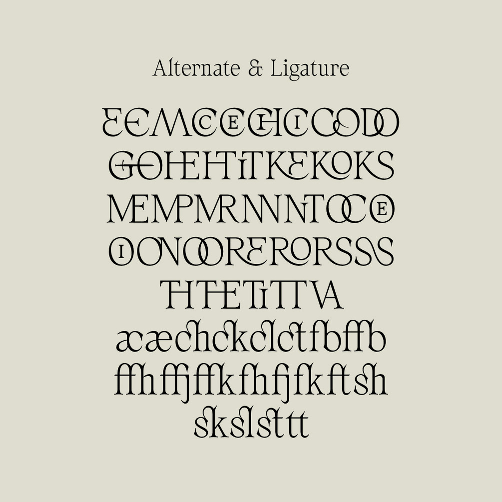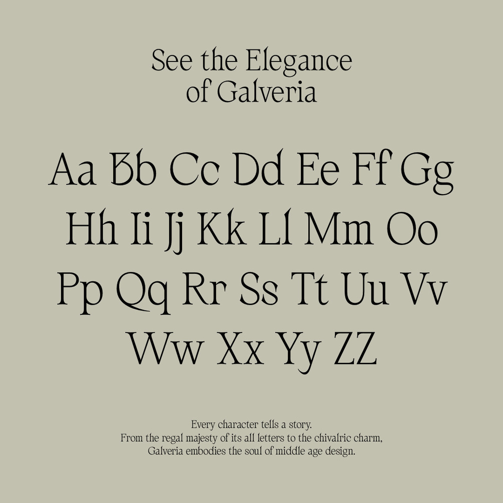 Its graceful curves and beautiful serifs echo the manuscripts,banners, and inscriptions of a bygone age, perfect for designs that demand a touch of history and grandeur.